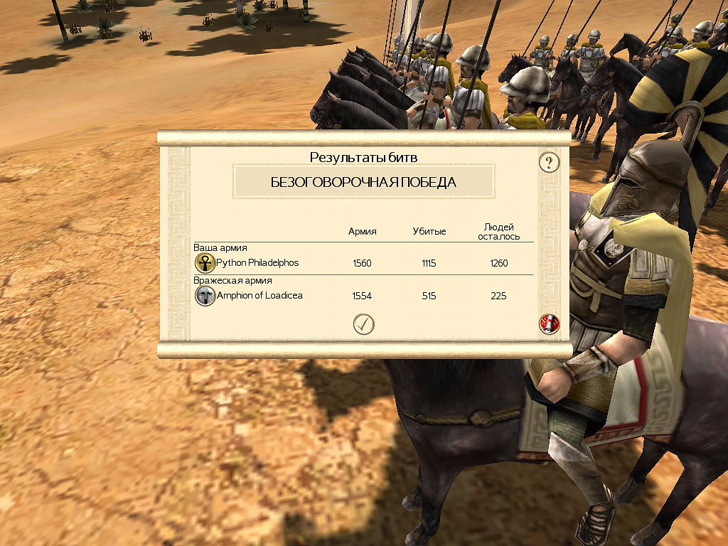 Битва происходит весьма успешно для моей армии, и вот враг сломлен и бежит, конница решительно уничтожает отступающих..