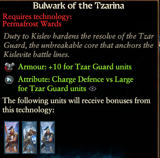 Древо технологий Кислева полностью обновлено, реорганизовано и переработано. Оно разделено на три ветви и сосредоточено на трех основных принципах геймплея Кислева.